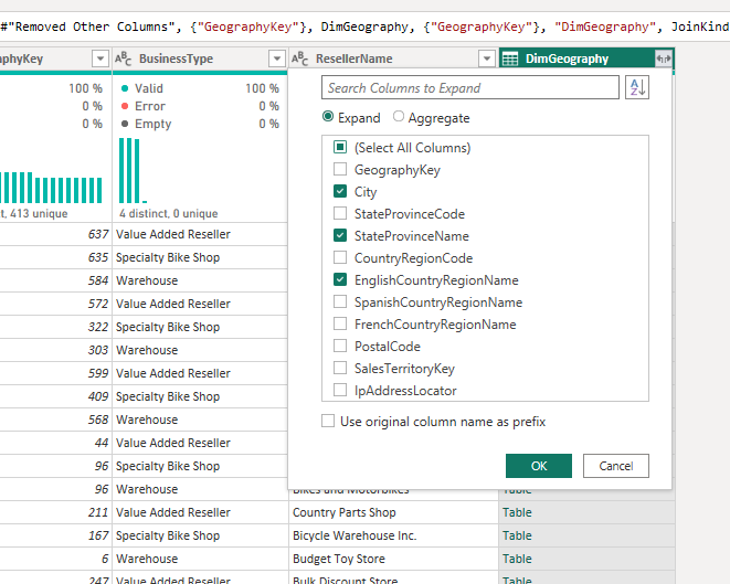 In the next step, we will merge the data from the DimGeography into the Reseller table.
