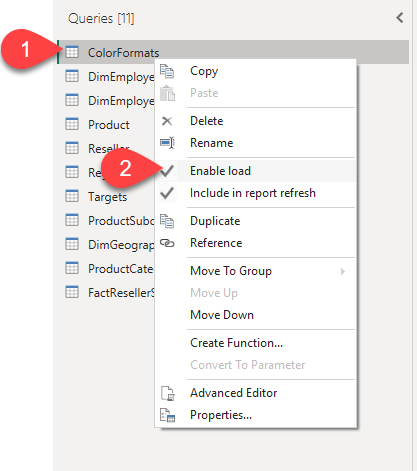 - Right-click on the ColorFormats query and click on the Enable Load option in the drop-down menu