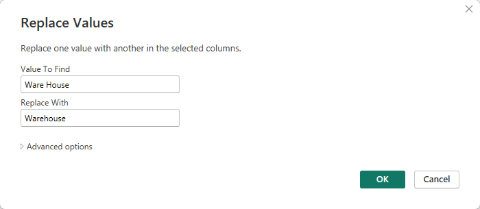 - In the Replace Values window, in the Value To Find box, enter M and leave the Replace with empty.