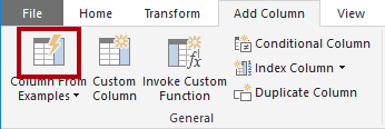 - On the Add Column ribbon tab, from inside the General group, select the Column From Examples icon.