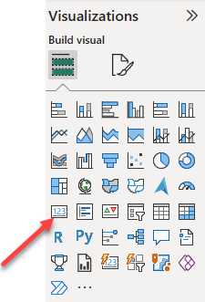 • Add a Card visual to the page, and then resize and position it so it sits to the right of the button and fills the remaining width of the page.