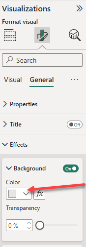 • In the General tab, in the Effects section, set the background color property to a light gray color (such as White, 10% Darker) to provide contrast.