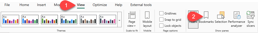• Disabling the Data option means the bookmark won’t use the current filter state. That’s important because otherwise the bookmark would permanently lock in the filter currently applied by the Year slicer.