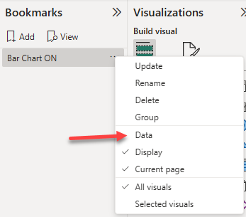 • If the visible chart is the bar chart, rename the bookmark as Bar Chart ON, otherwise rename the bookmark as Column Chart ON.