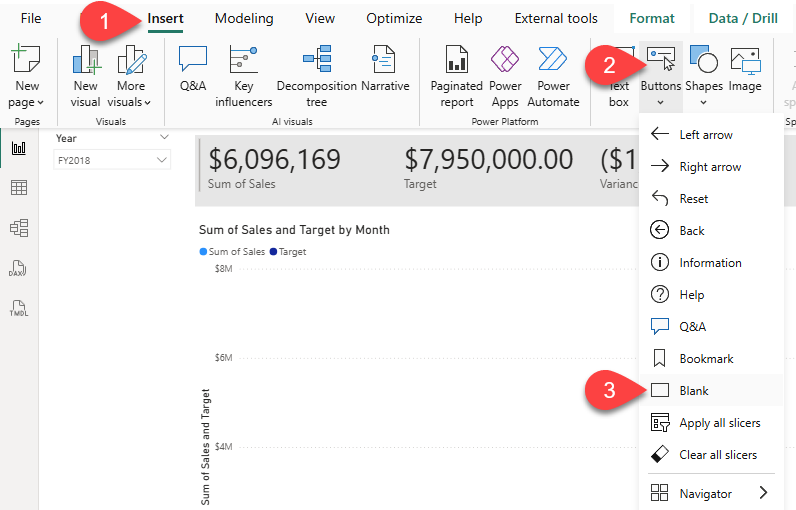 • Position the button directly beneath the Year slicer.