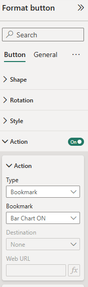• Expand the Action section, and then set the Type dropdown list to Bookmark.