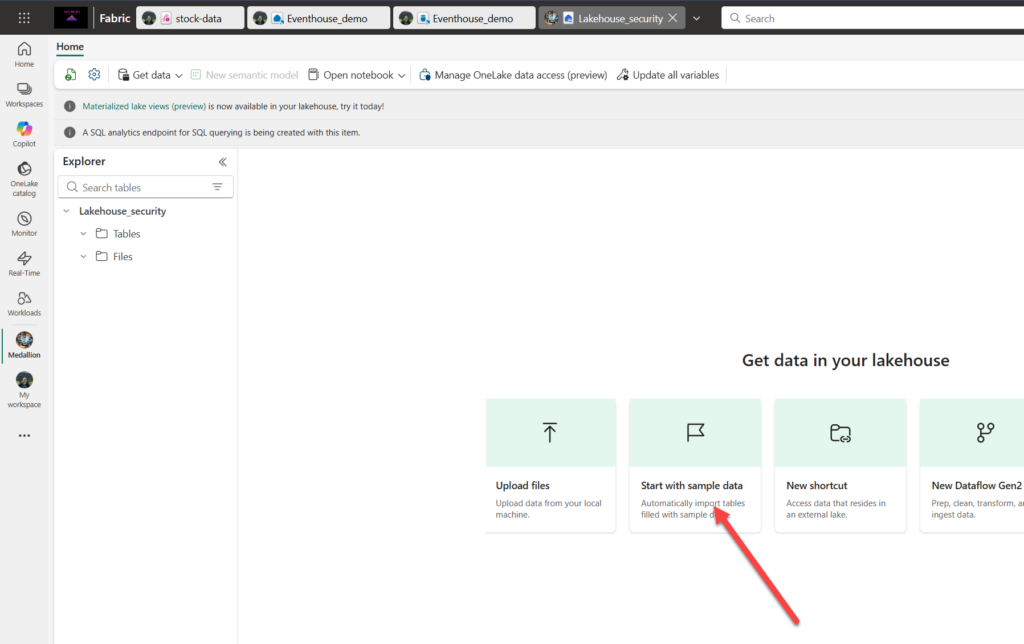 • Return to the browser where you’re logged in as the second user. Ensure you’re still on the page where the lakehouse is open. Refresh the browser.