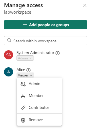 Note: To complete the exercises in this lab, you’ll need two users: one user should be assigned the Workspace Admin role, and the other should have the Workspace Viewer role. To assign roles to workspaces, see Give access to your workspace. If you don’t have access to a second account in the same organization, you can still do the exercise as a Workspace Admin and skip the steps done as a Workspace Viewer account, referring to the lab’s screenshots to see what a Workspace Viewer account has access to.