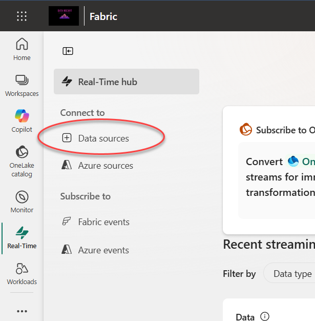 - In the Real-Time Hub, in the Connect to section, select Data Sources.